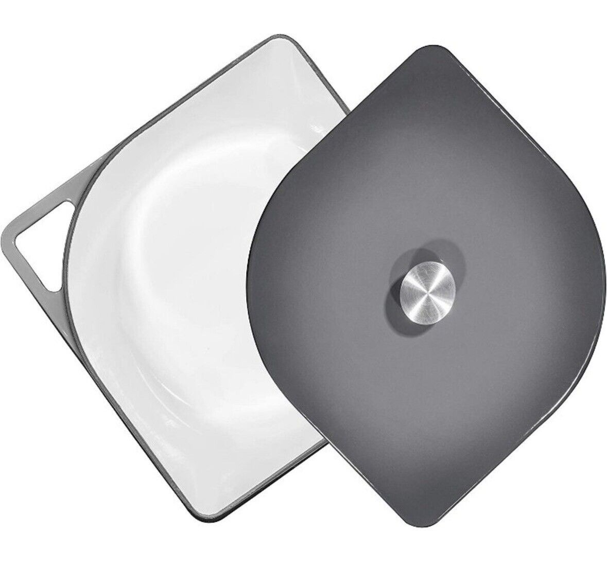 5 Quart Cast Iron Enameled Dutch Oven Modern Squoval Shaped Design, Gray