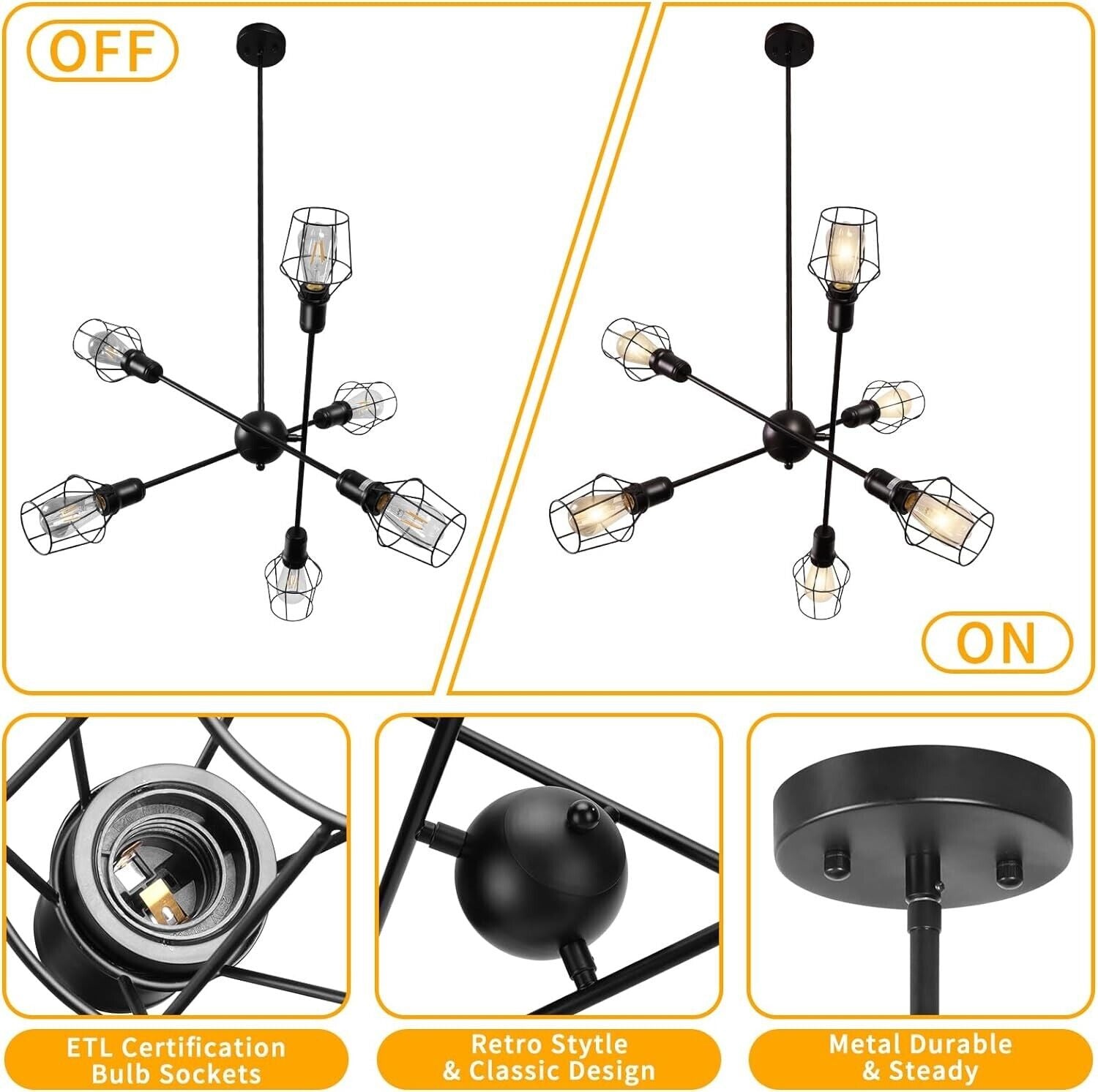 - Large-Sized Island Pendant Light Fixtures Designed Specifically for Farmhouse Decor: It features 6 lamp heads, with dimensions of 34 in / 86 cm in width and a maximum height of 51 in / 130 cm, making your home look truly grand. Crafted from high-quality iron, it boasts an eye-catching appearance with a textured surface, matte black, perfectly embodying a vintage and elegant style