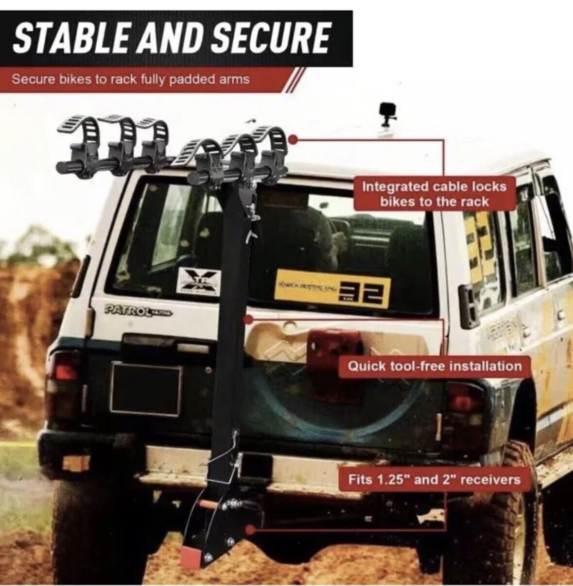 Bicycle rack for car Compatible with both 1-1/4" and 2" hitch receivers (class I, II, and III) right out of the box