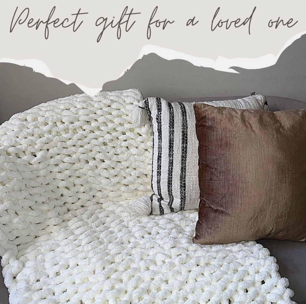 Kaffrey 50 x 60 Inches, 4.2 lb, Chunky Knit Blanket, Luxury Hand-Knitted Chenille Throw Blanket, Soft and Cozy Giant Knitted Blanket, Machine-Washable and Non-Shedding, Toasted Marshmallow.
