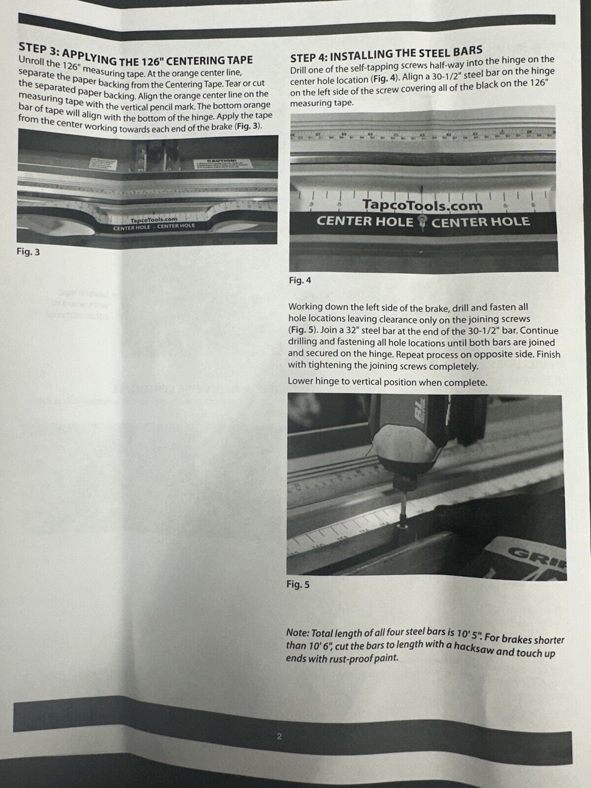Can be used on 2', 4', 4'6", 6', 6'6", 8'6" brake by cutting the length of the bar with a grinder