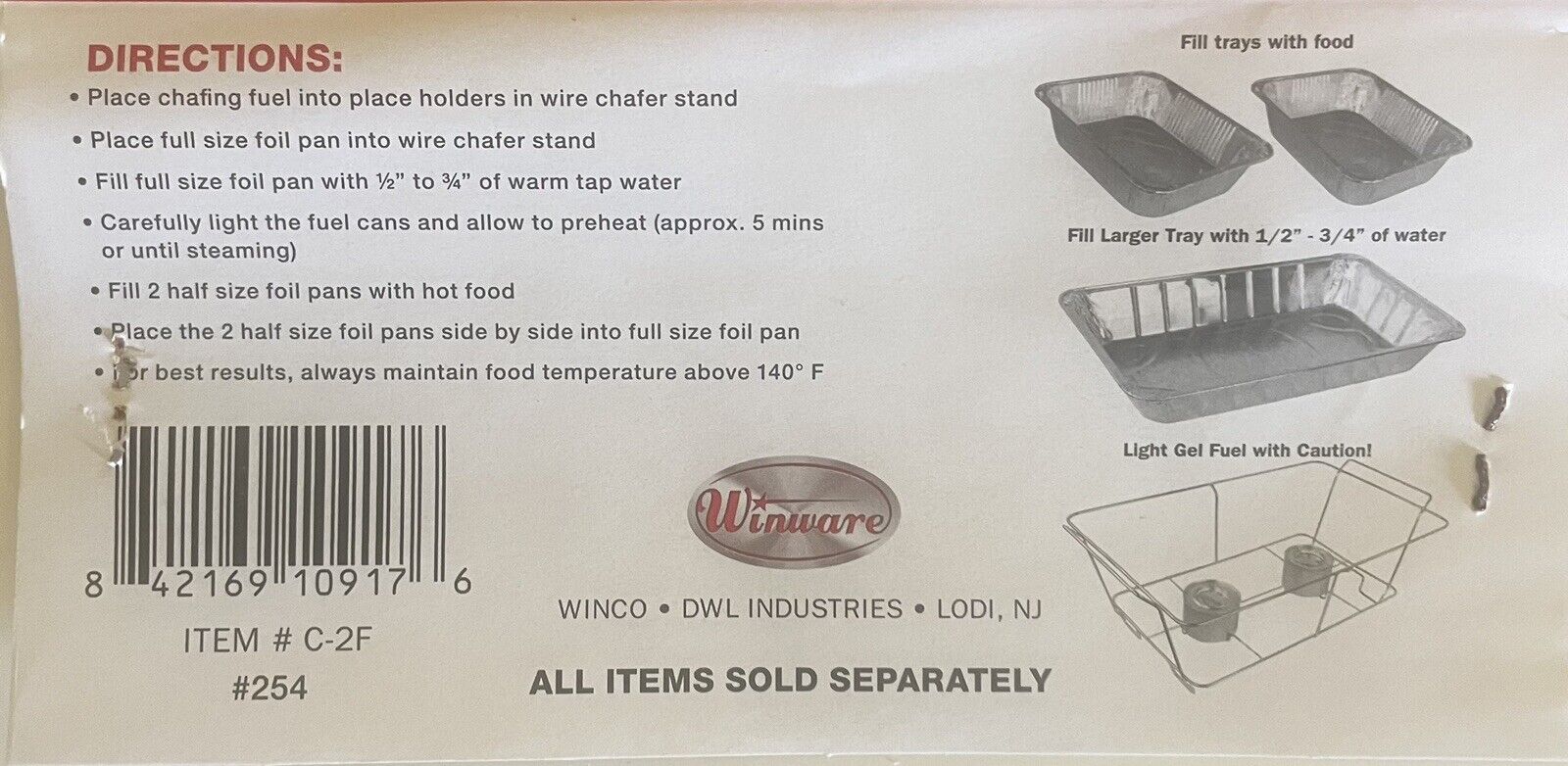 The Winco C-2F chrome wire chafer stand is an inexpensive alternative to conventional chafers. It's an economical solution for outdoor catered events! This wire stand is used to support a full size (12" x 20") steam table pan, or the disposable aluminum equivalent. This chafer stand kit includes built- in support for 2 fuel canisters.