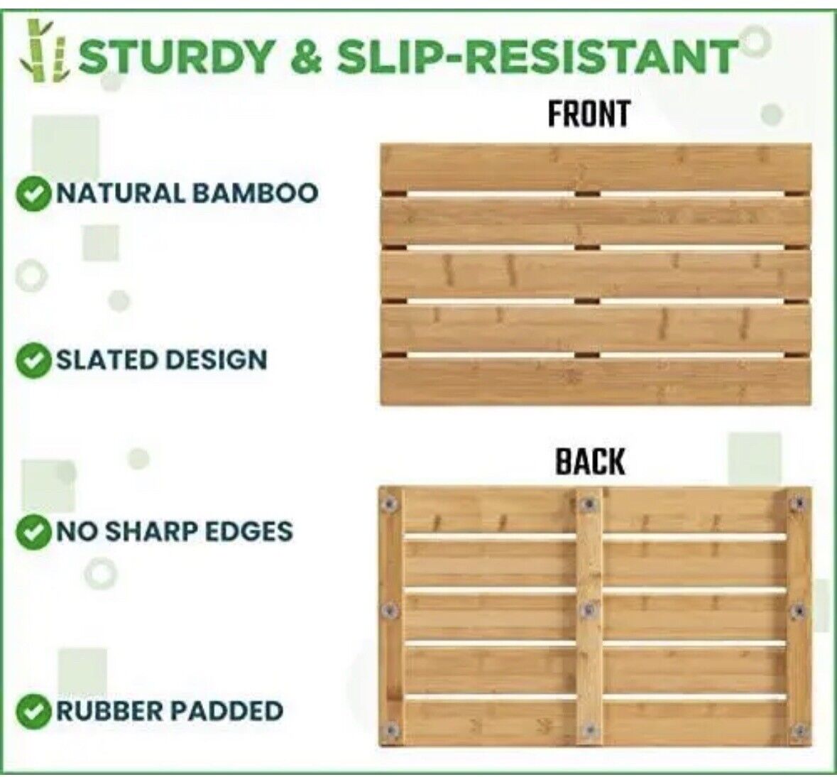 ZPirates Bamboo Bath Mat with Soap Dish - Bathmat (26”x16”)
