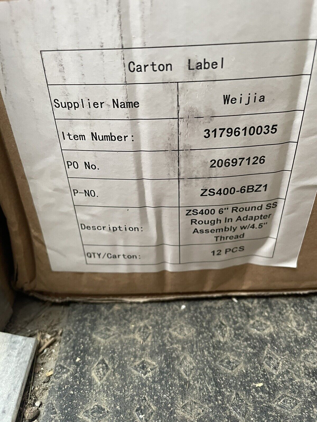 ZS400 6" Round SS Rough In Adapter Assembly w/4.5"Thread